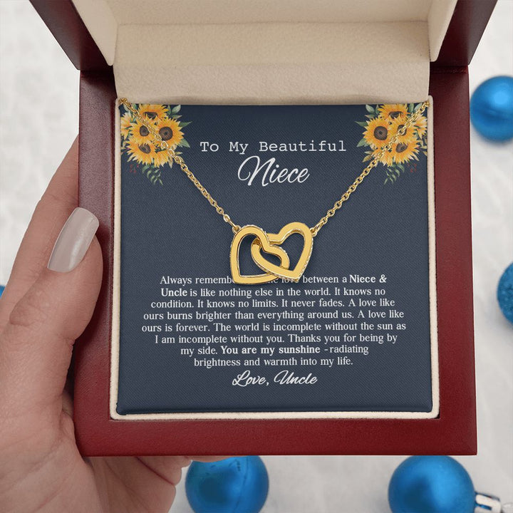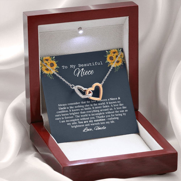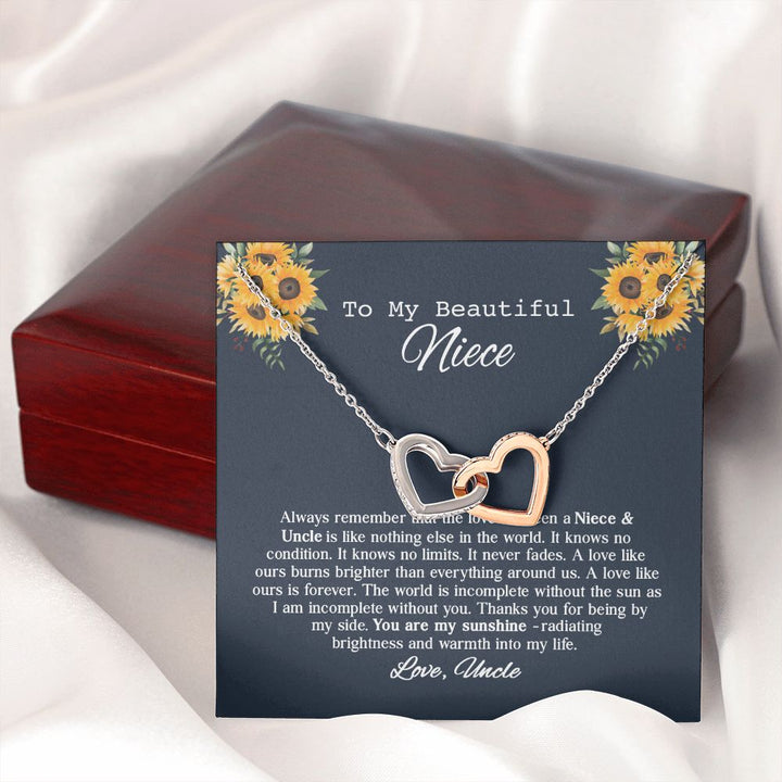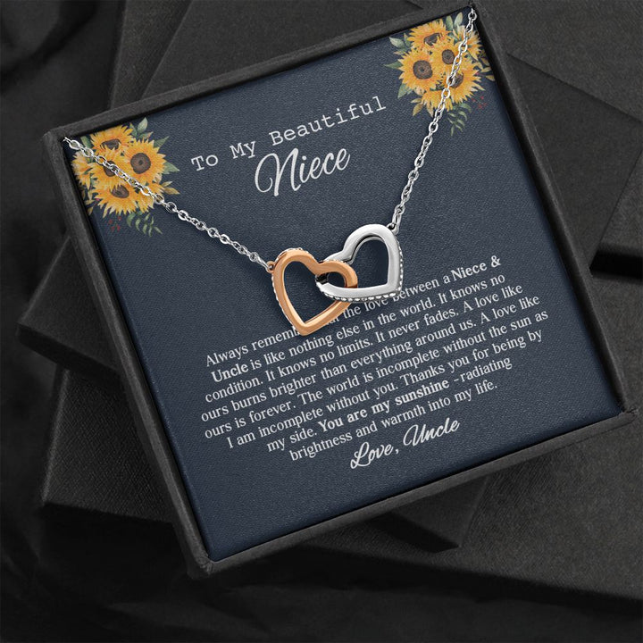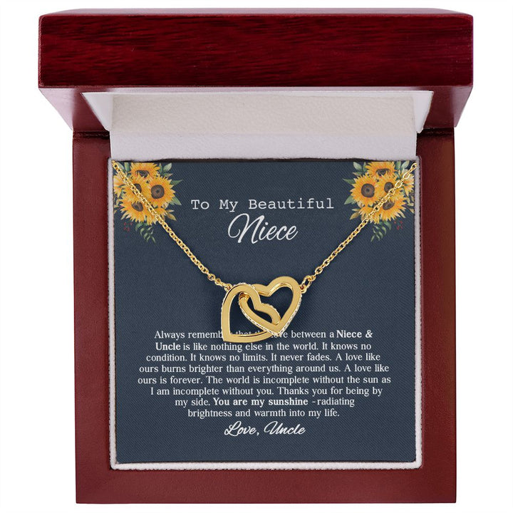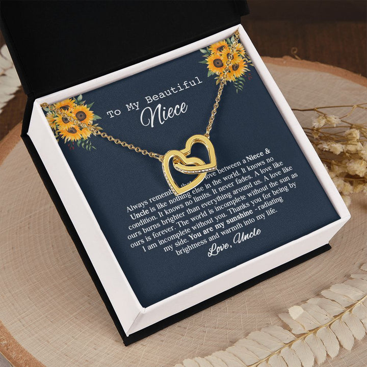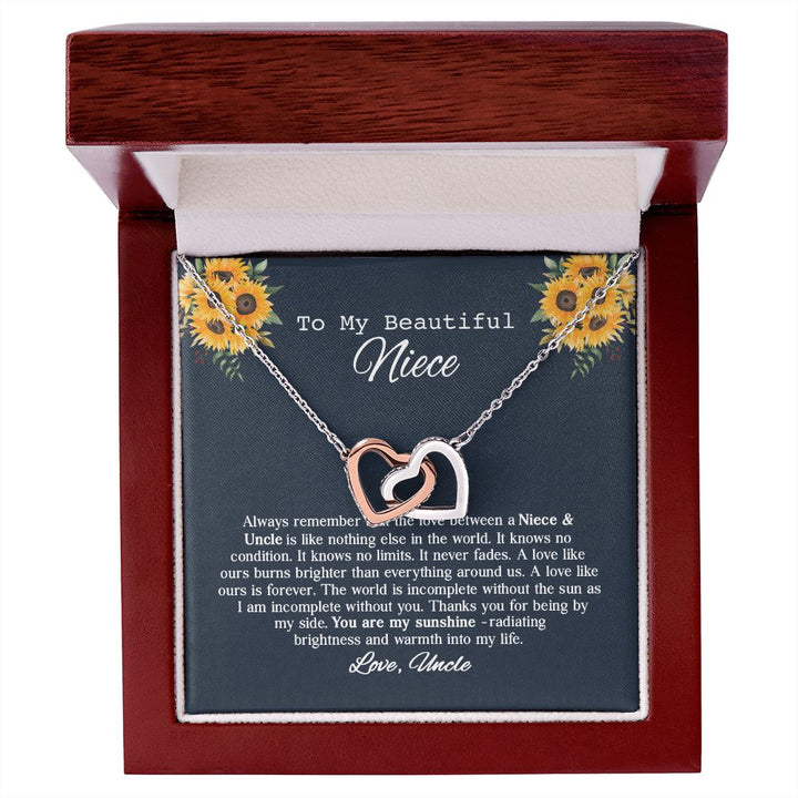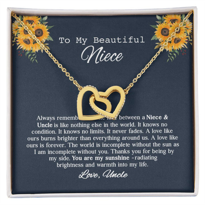 To My Beautiful Niece Sunflower Interlocking Hearts Necklace Gift From Uncle