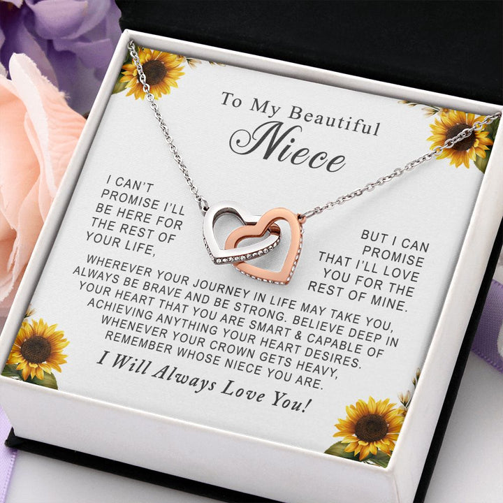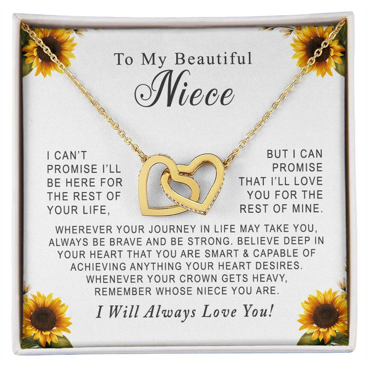 To My Beautiful Niece Sunflower Interlocking Hearts Necklace Gift From Aunt or Uncle