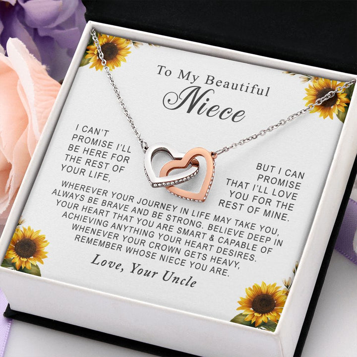 To My Beautiful Niece Sunflower Interlocking Hearts Necklace Gift From Uncle