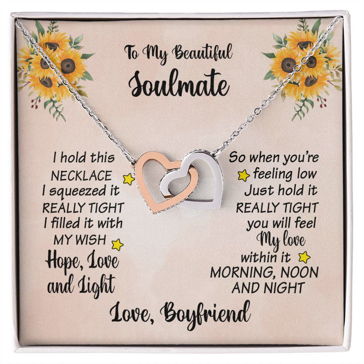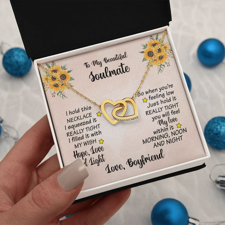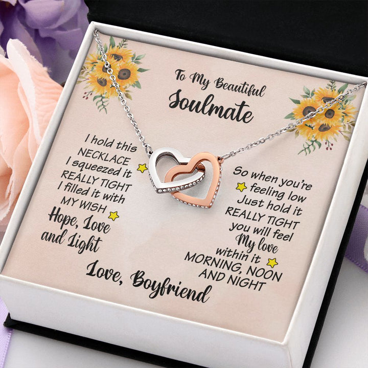 To My Beautiful Soulmate Interlocking Hearts Necklace Gift From Boyfriend