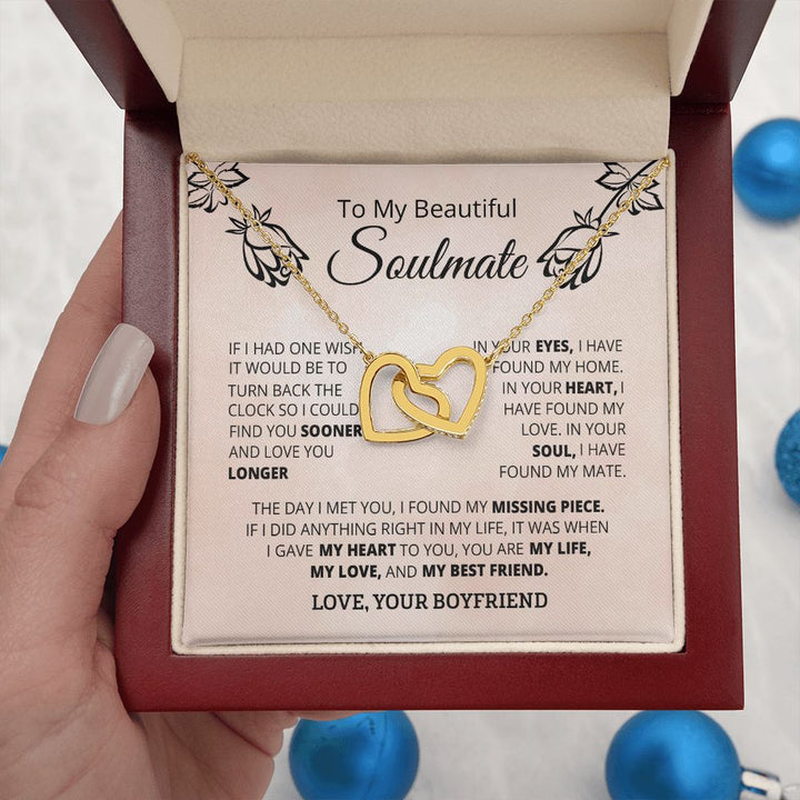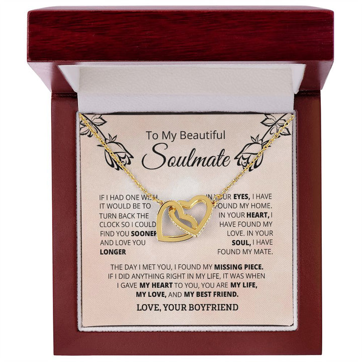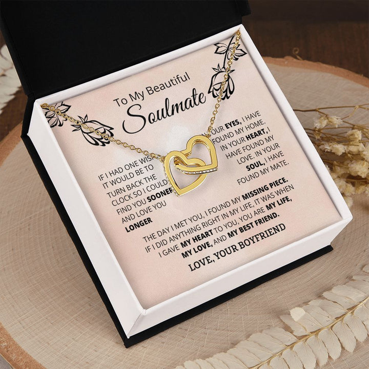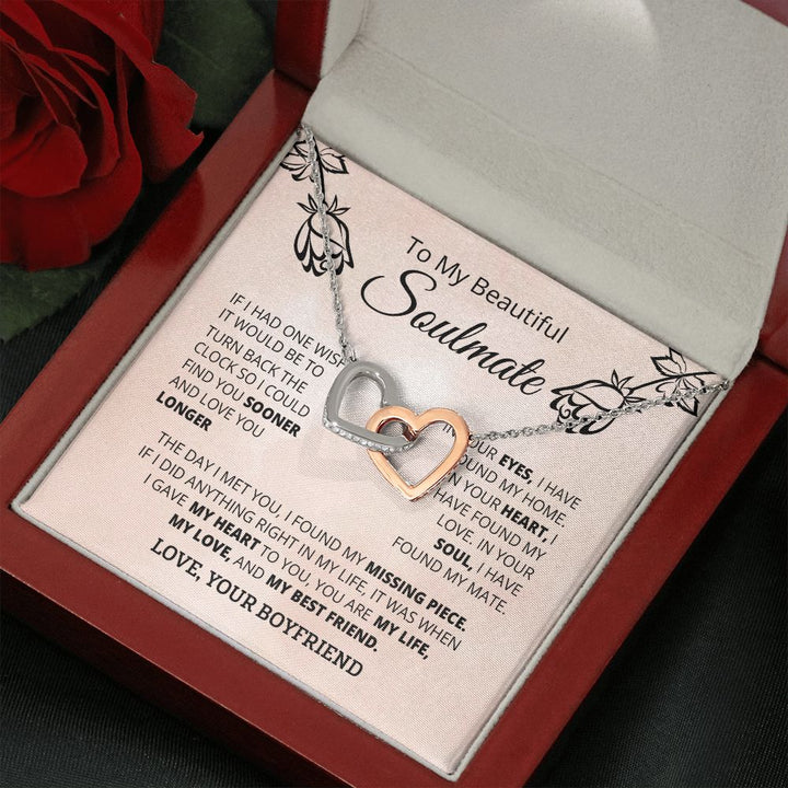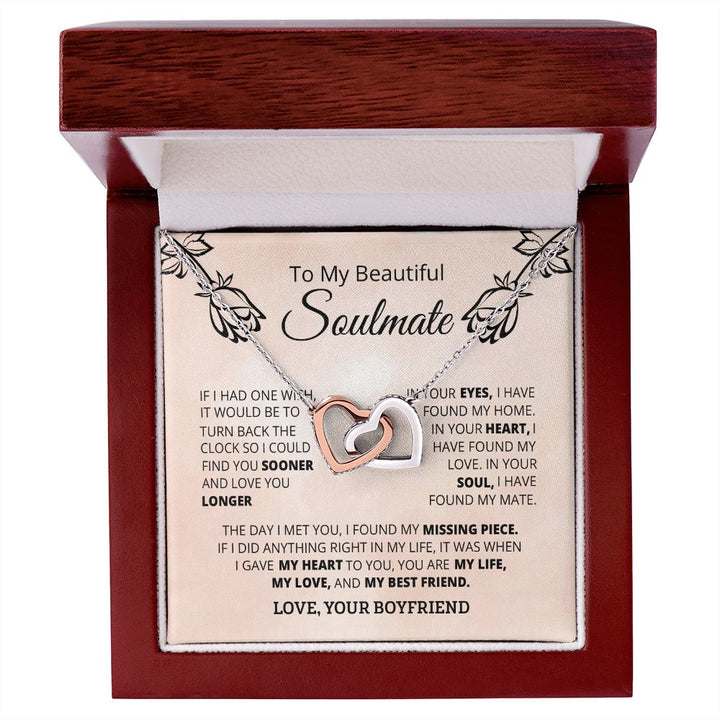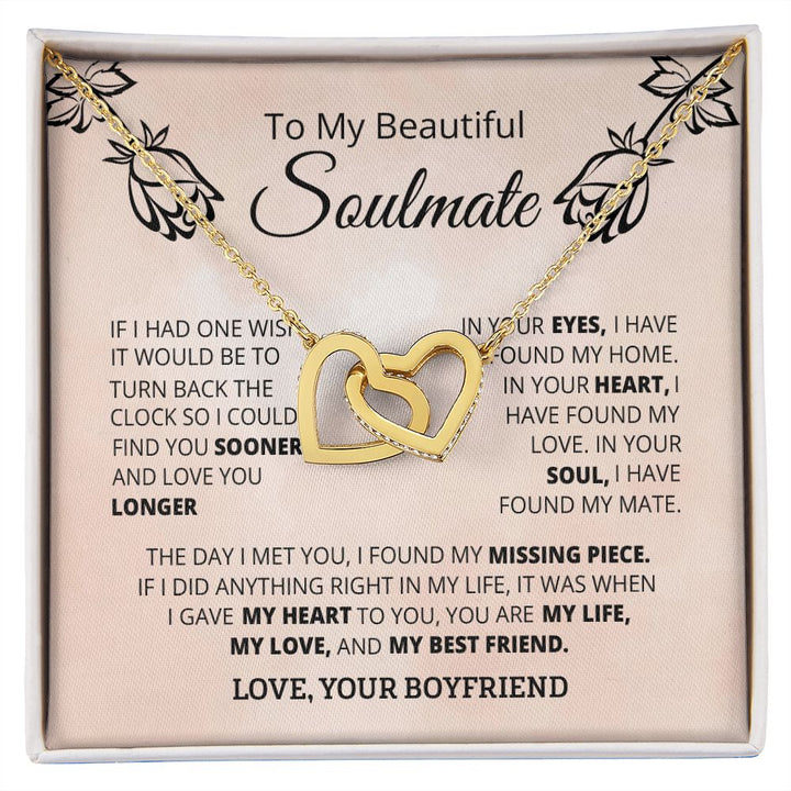 To My Beautiful Soulmate Interlocking Hearts Necklace Gift From Boyfriend or Husband