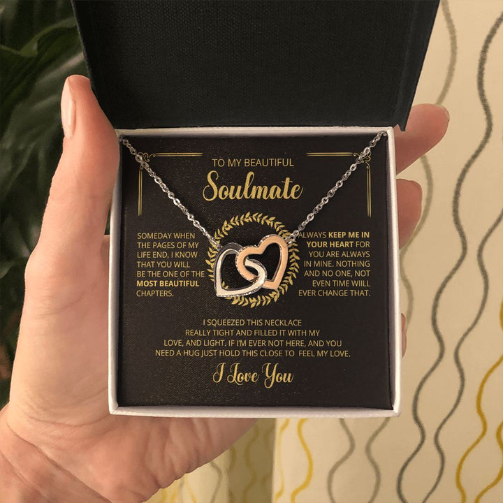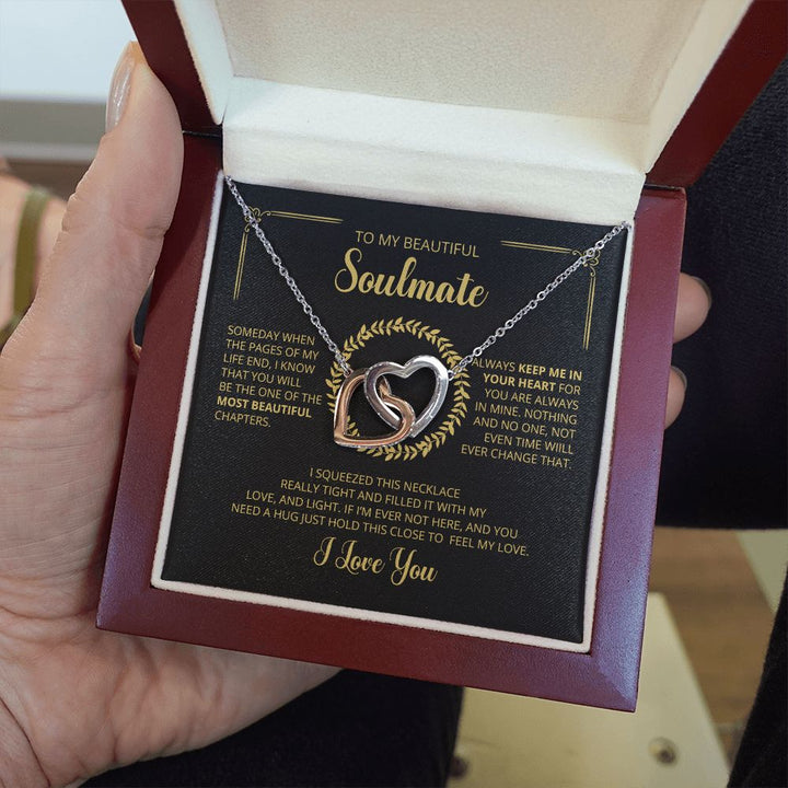 To My Beautiful Soulmate Interlocking Hearts Necklace Gift From Husband or Boyfriend