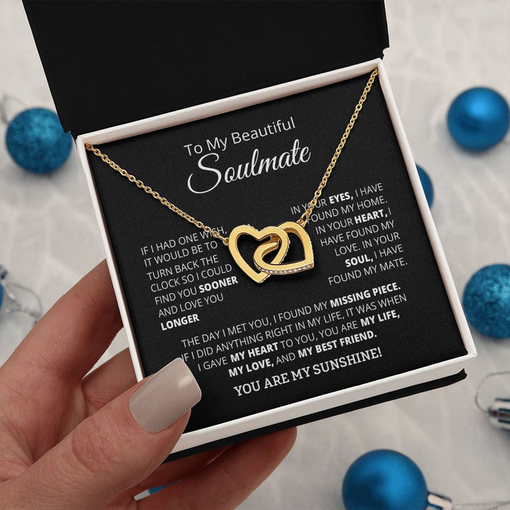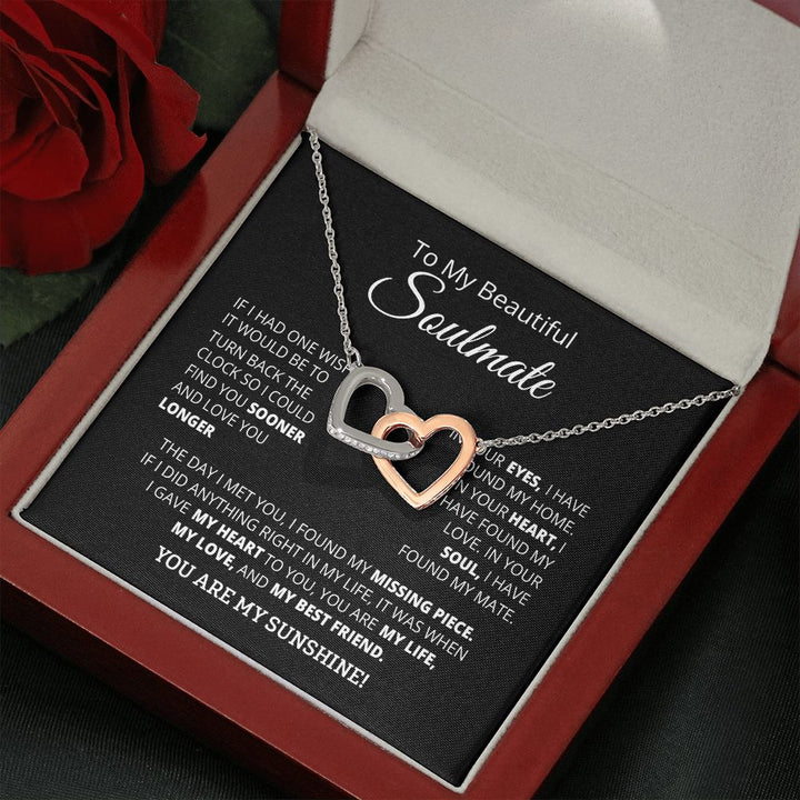 To My Beautiful Soulmate Interlocking Hearts Necklace Gift From Husband or Boyfriend