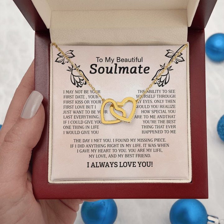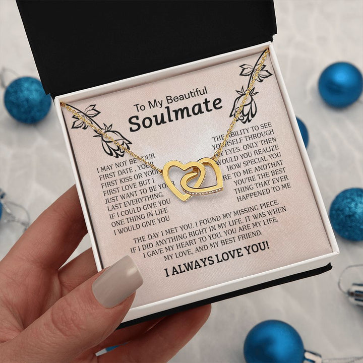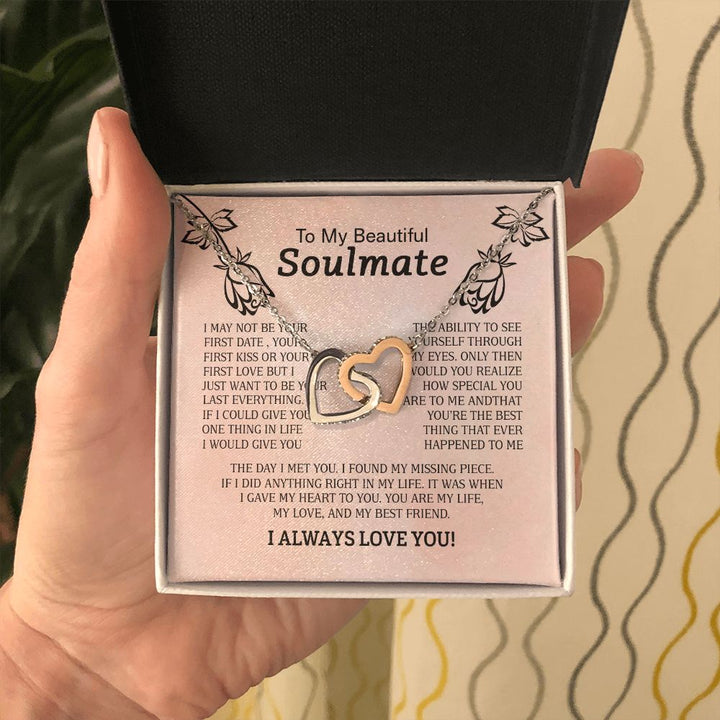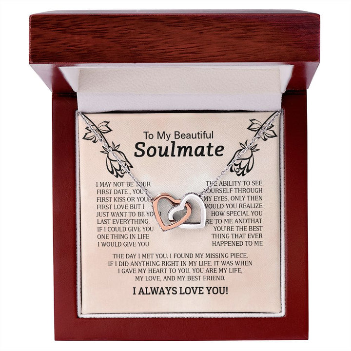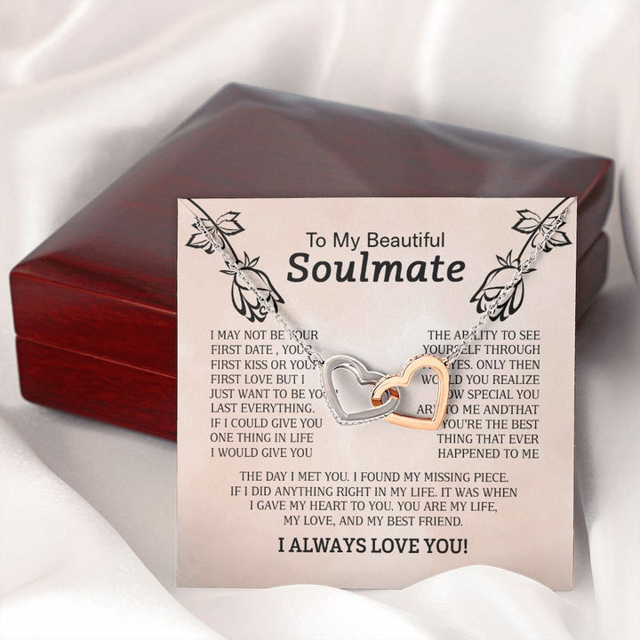 To My Beautiful Soulmate Interlocking Hearts Necklace Gift From Boyfriend or Husband