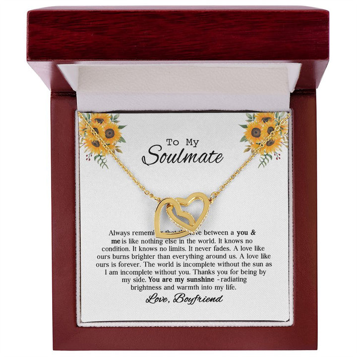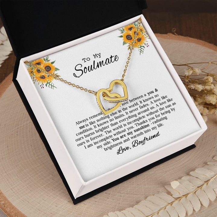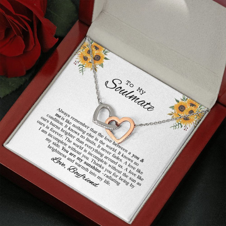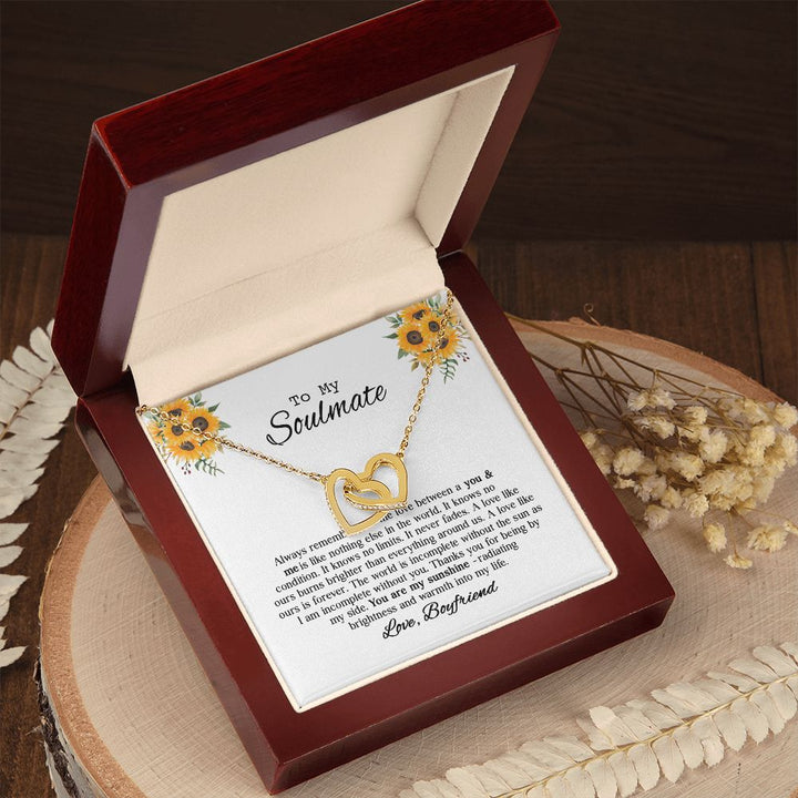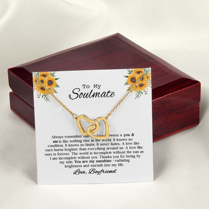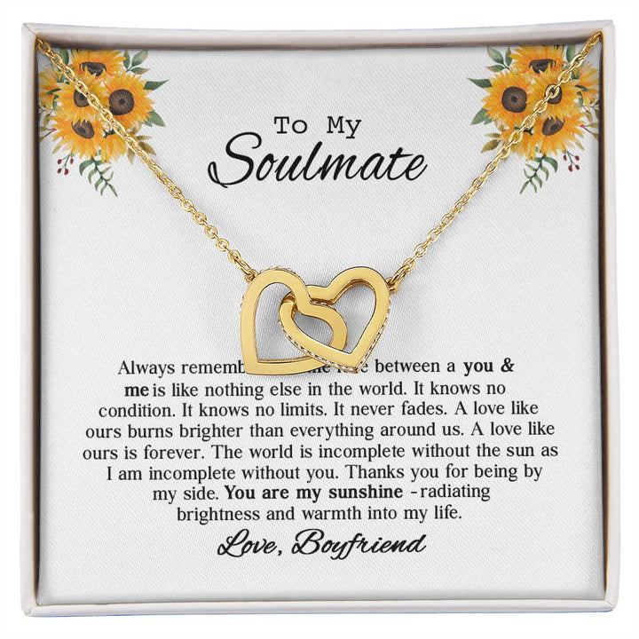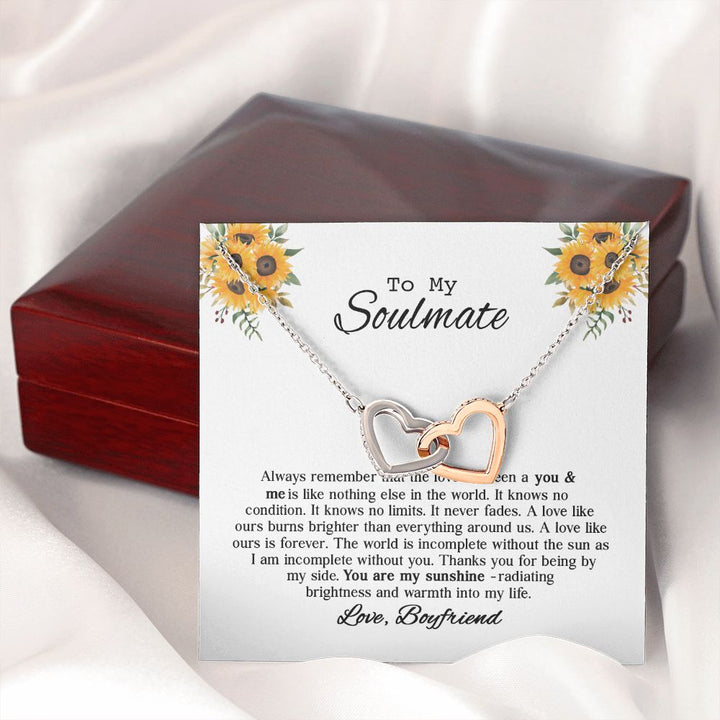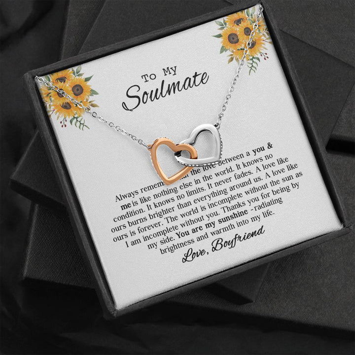 To My Beautiful Soulmate Sunflower Interlocking Hearts Necklace Gift From Boyfriend