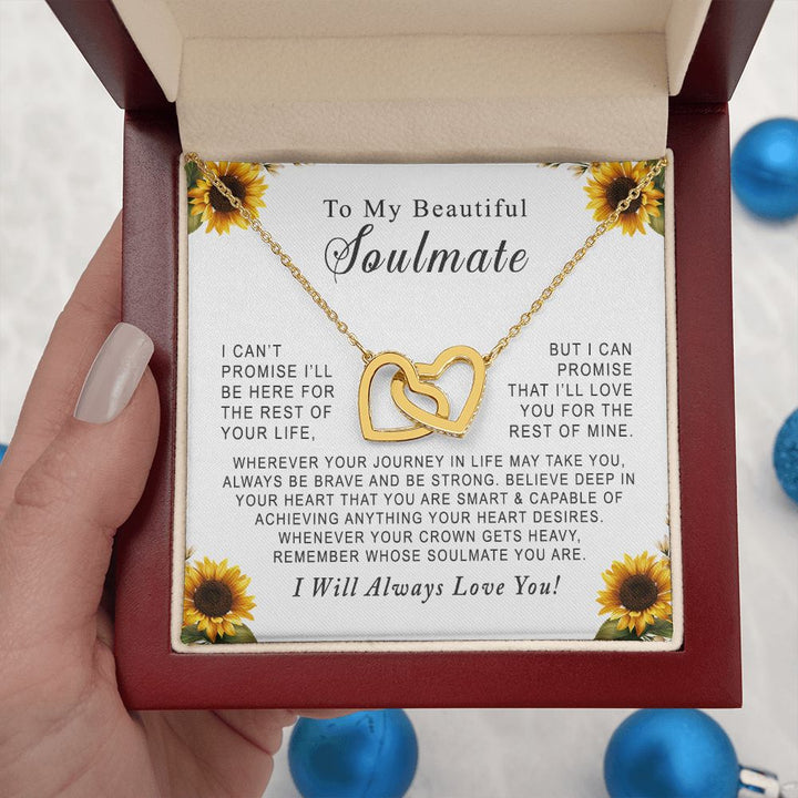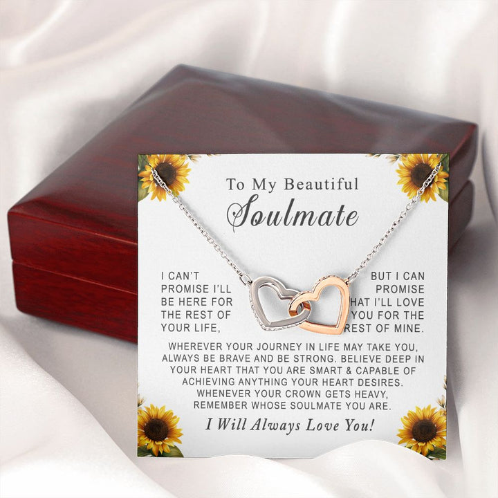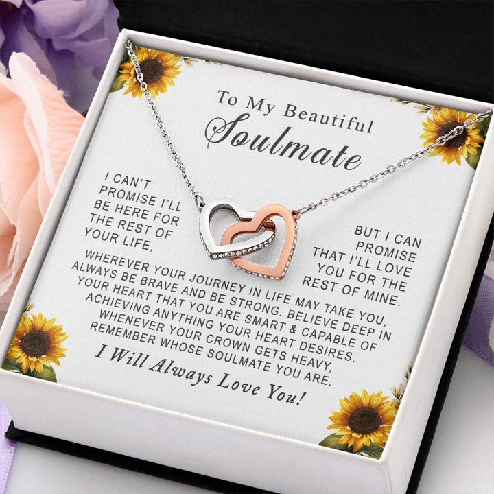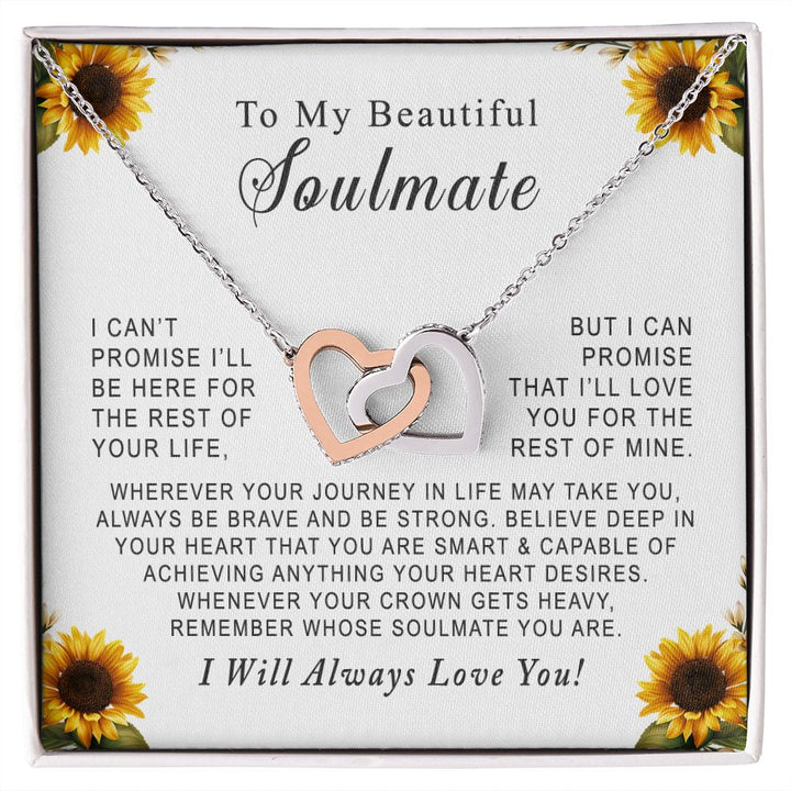 To My Beautiful Soulmate Sunflower Interlocking Hearts Necklace Gift From Husband or Boyfriend