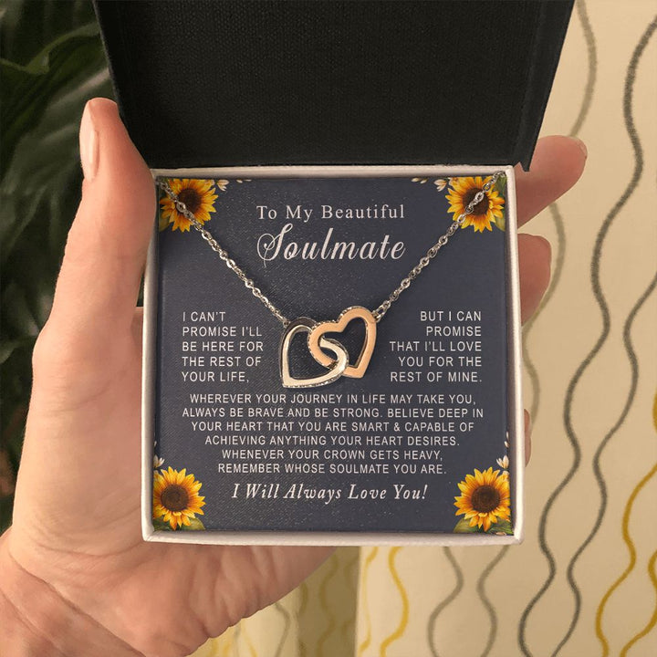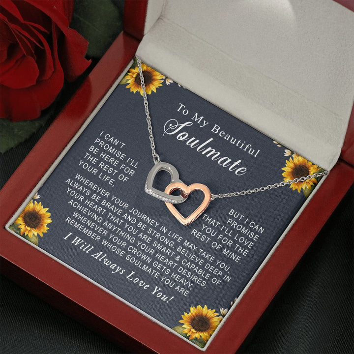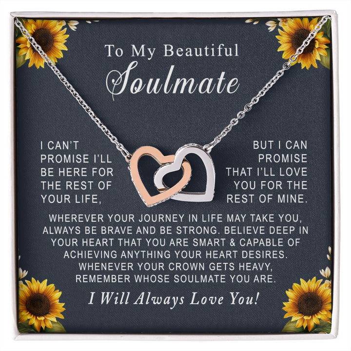 To My Beautiful Soulmate Sunflowers Interlocking Hearts Necklace Gift From Husband or Boyfriend