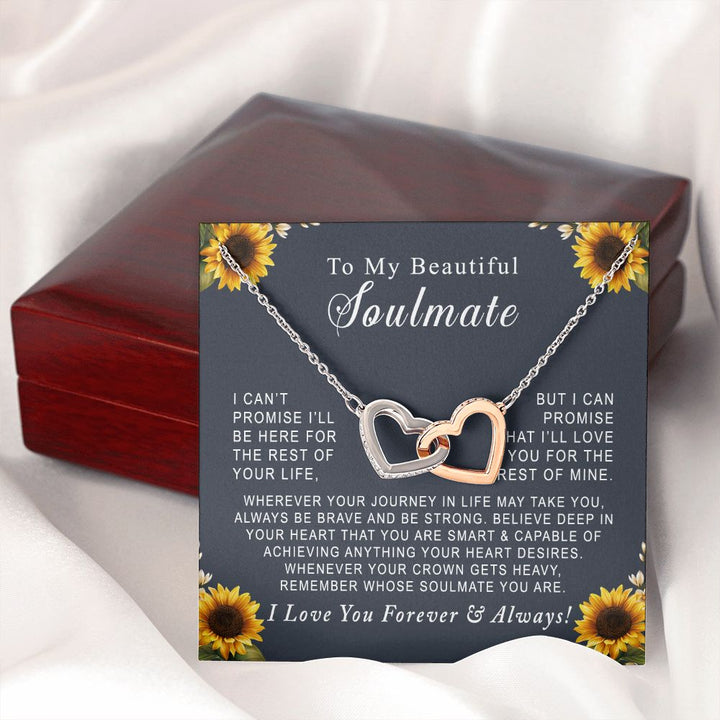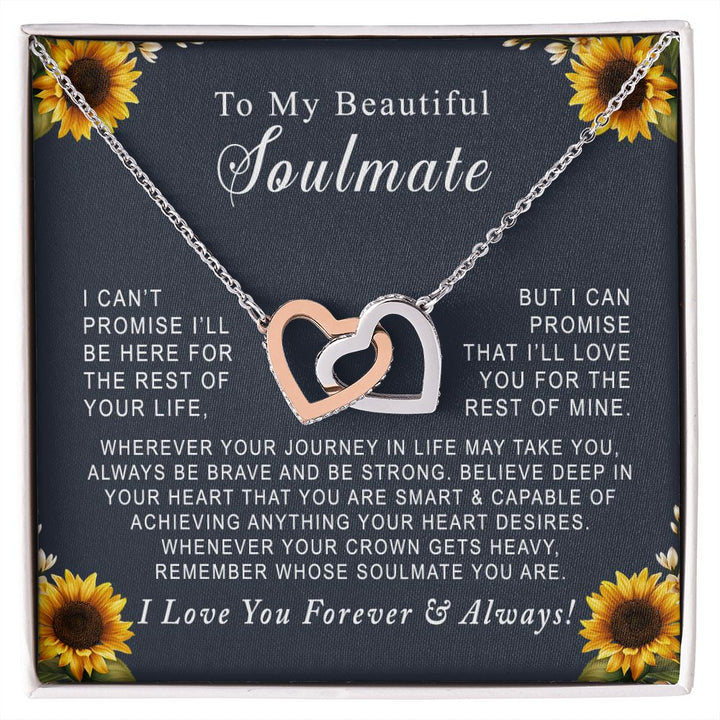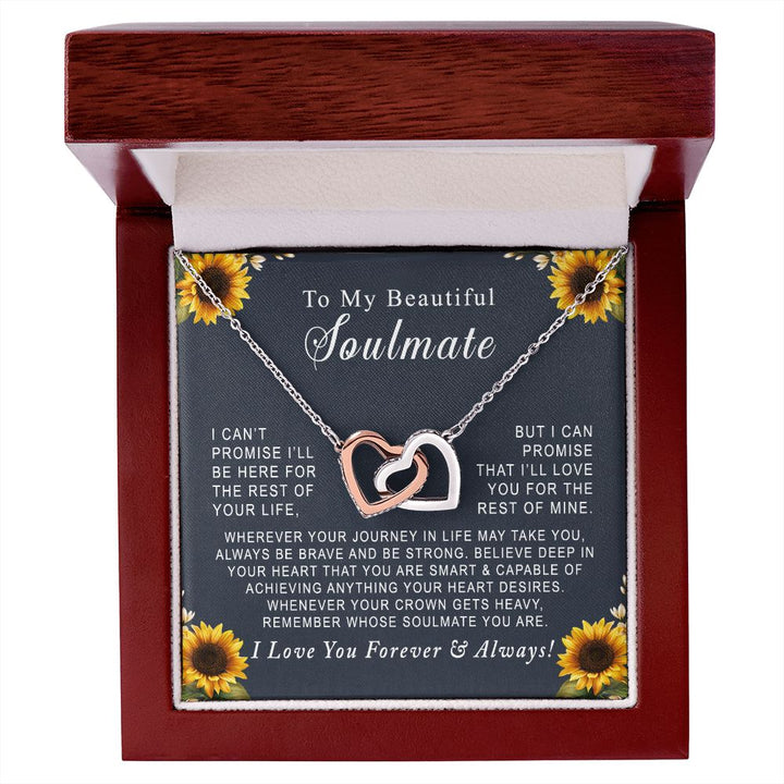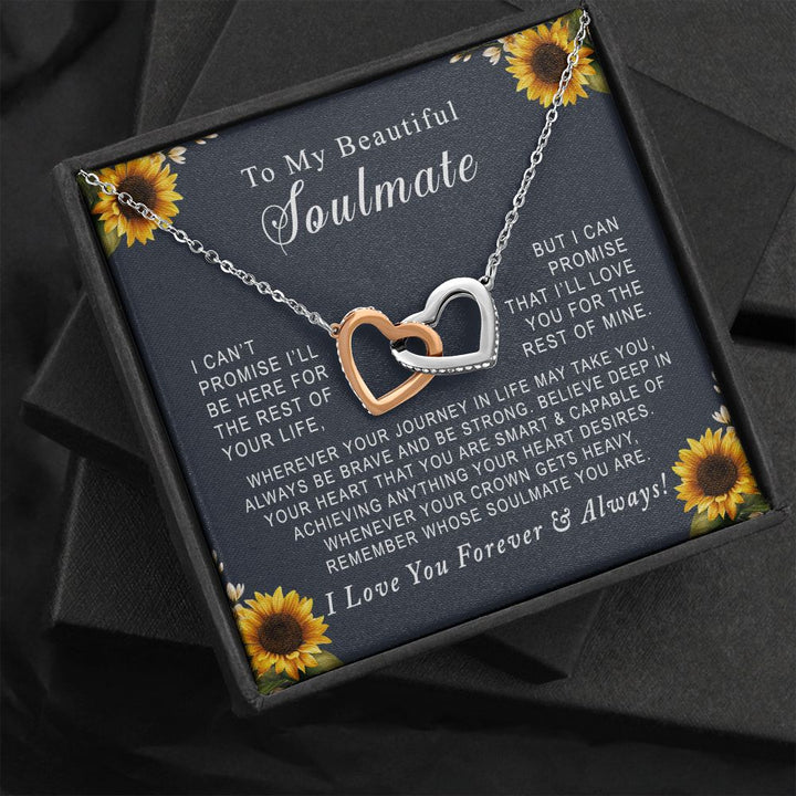 To My Beautiful Soulmate Sunflowers Interlocking Hearts Necklace Gift From Husband or Boyfriend