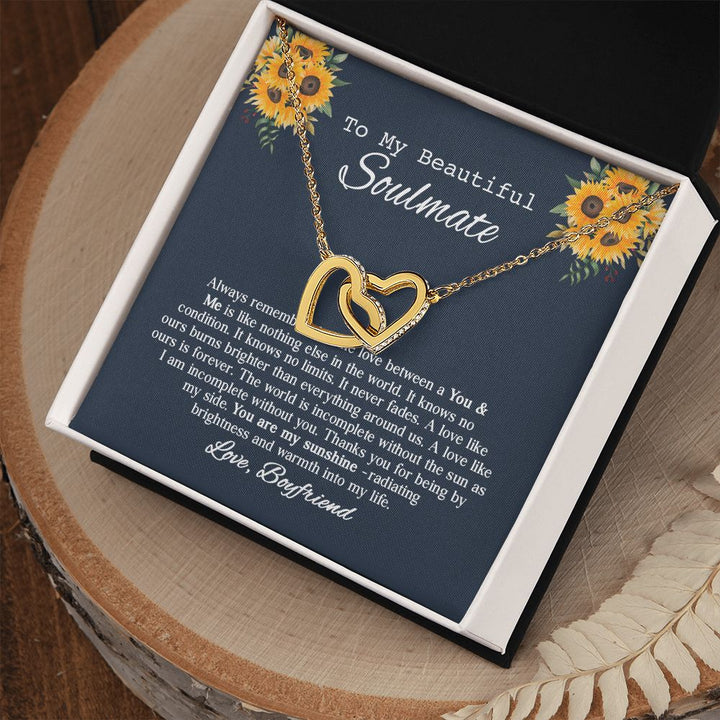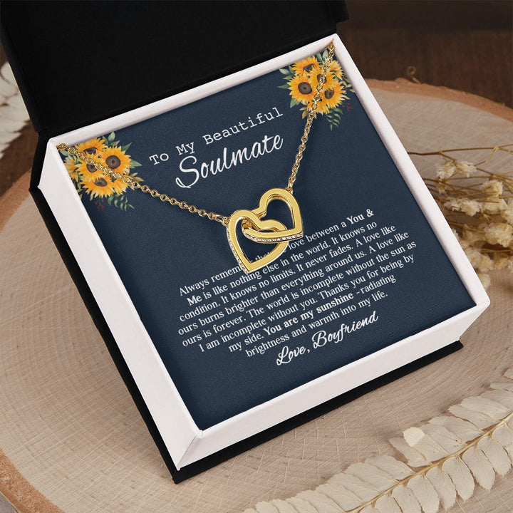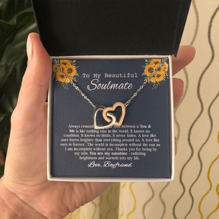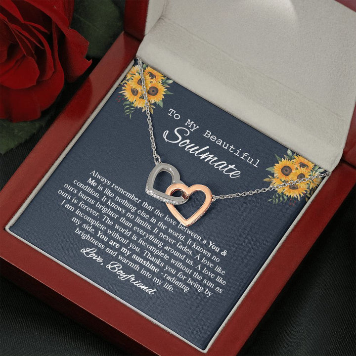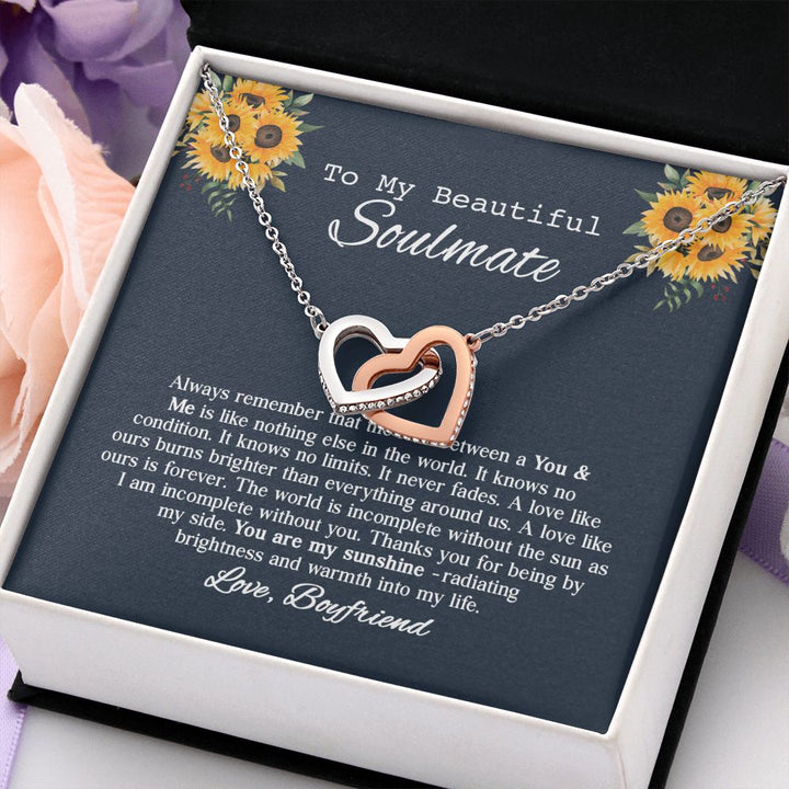 To My Beautiful Soumate Sunflower Interlocking Hearts Necklace Gift From Boyfriend
