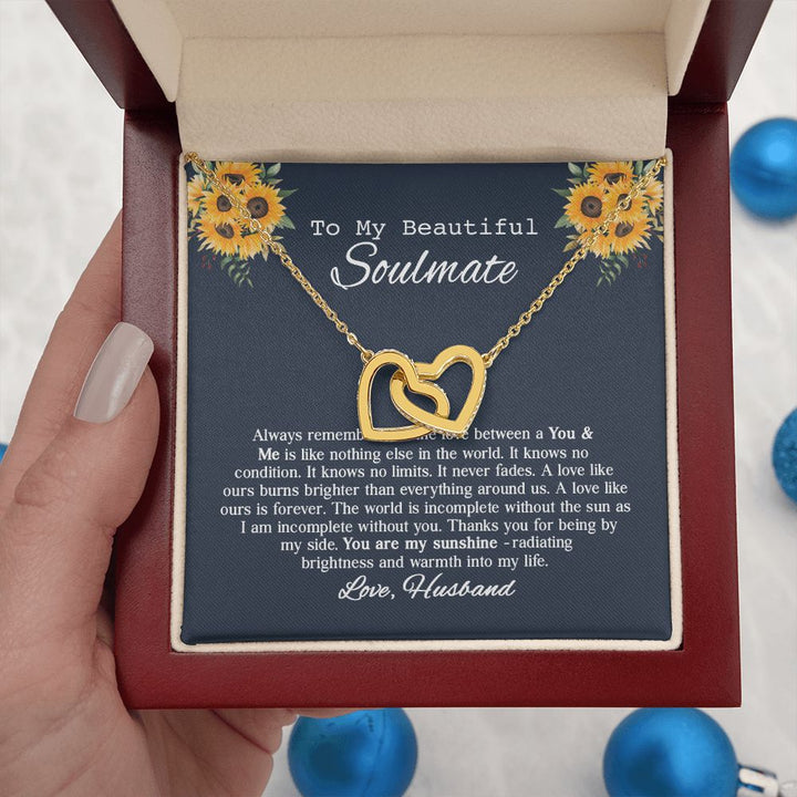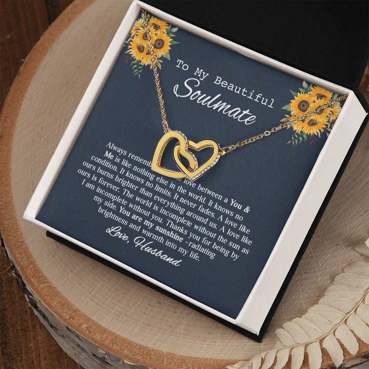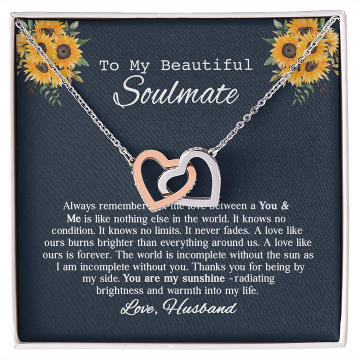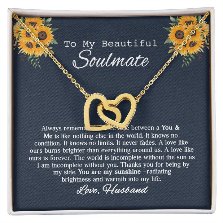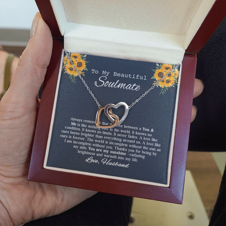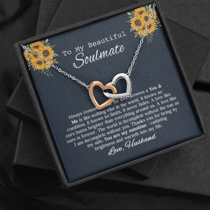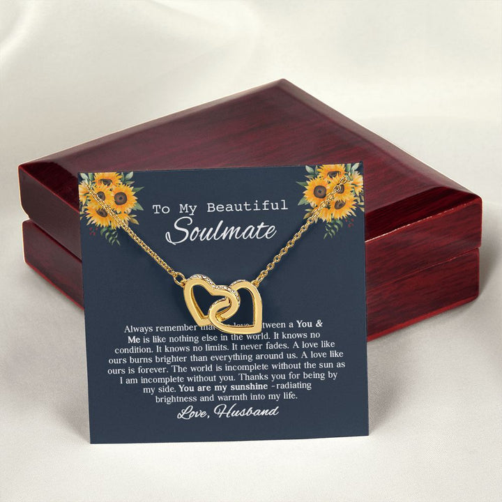 To My Beautiful Soumate Sunflower Interlocking Hearts Necklace Gift From Husband