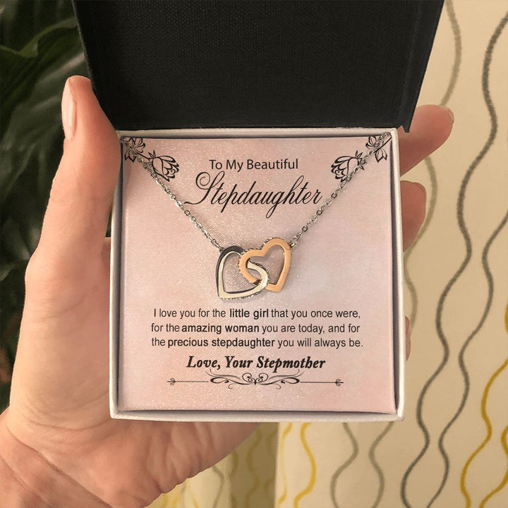 To My Beautiful Stepdaughter Interlocking Hearts Necklace Gift From Stepmother