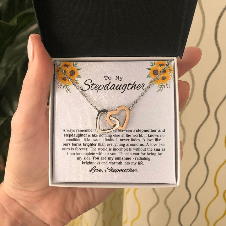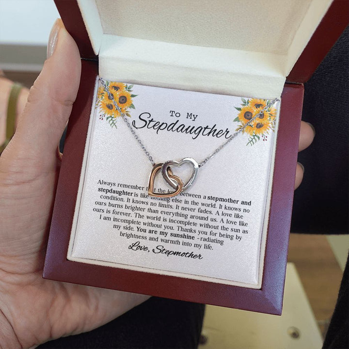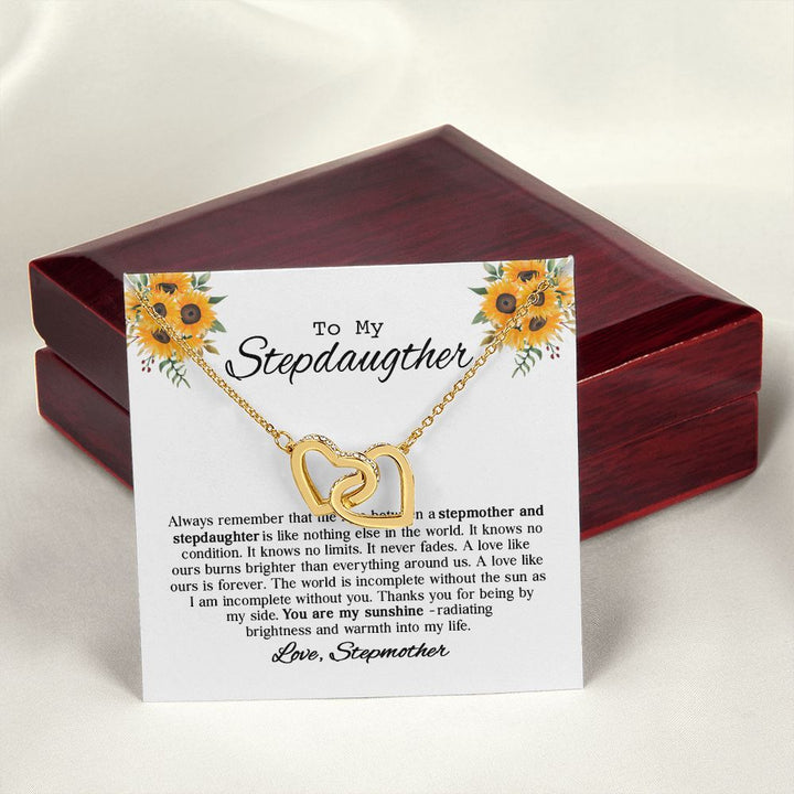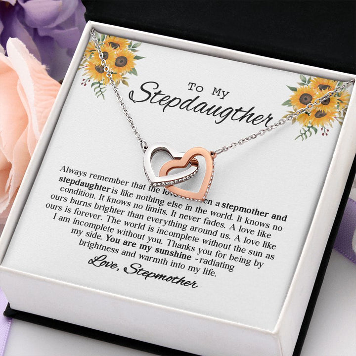 To My Beautiful Stepdaughter Sunflower Interlocking Hearts Necklace Gift From Stepmother