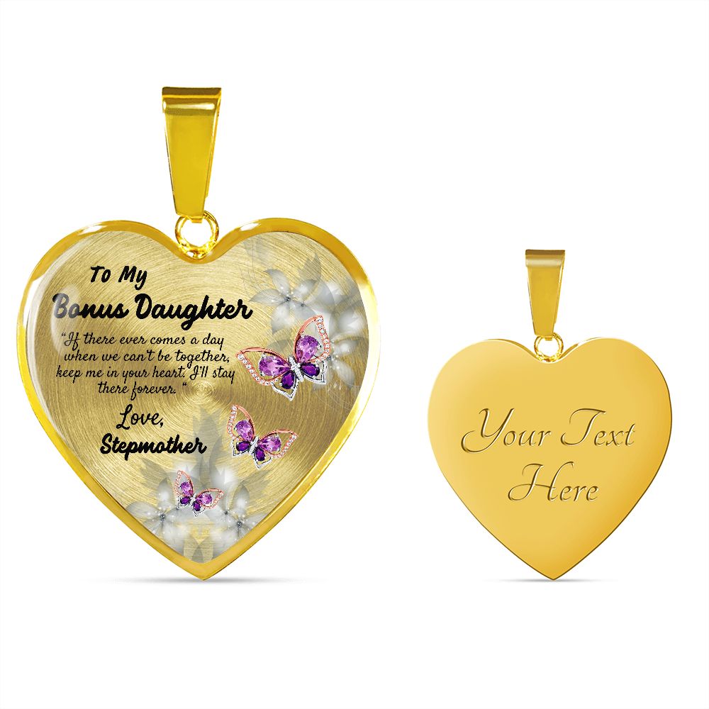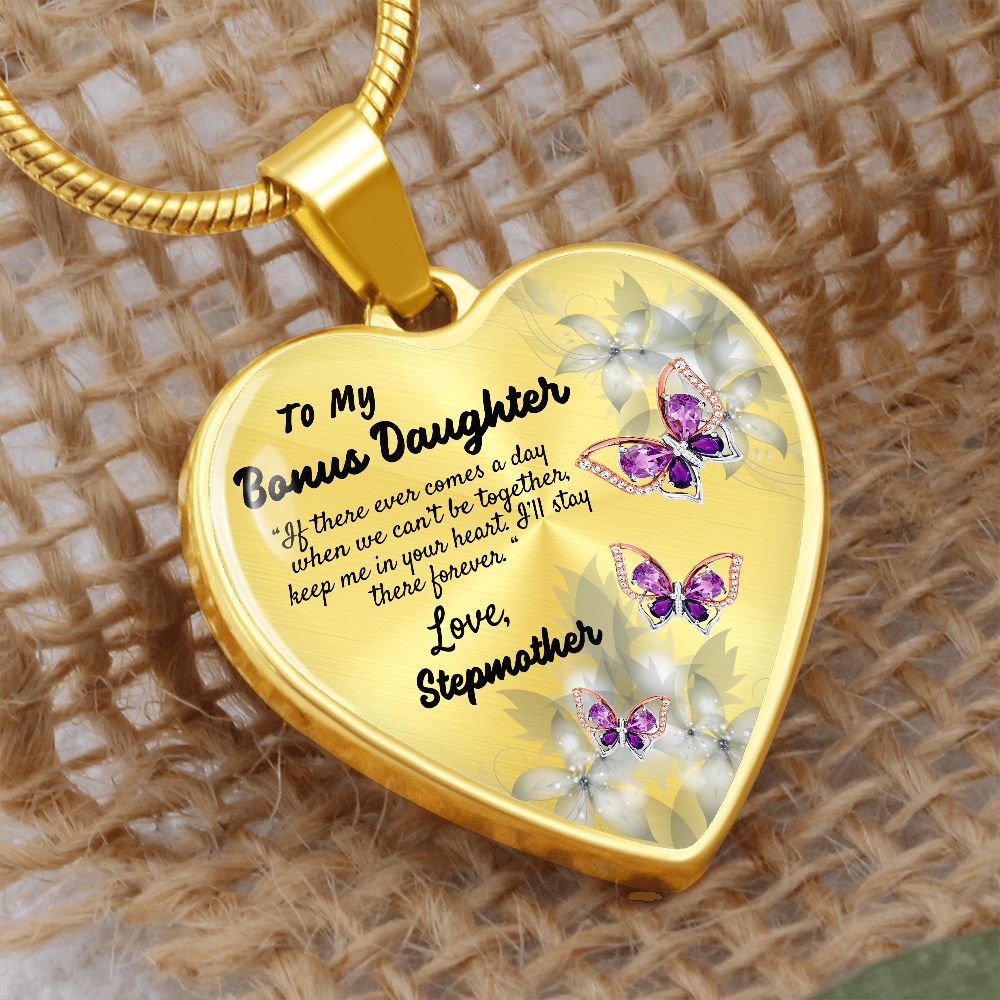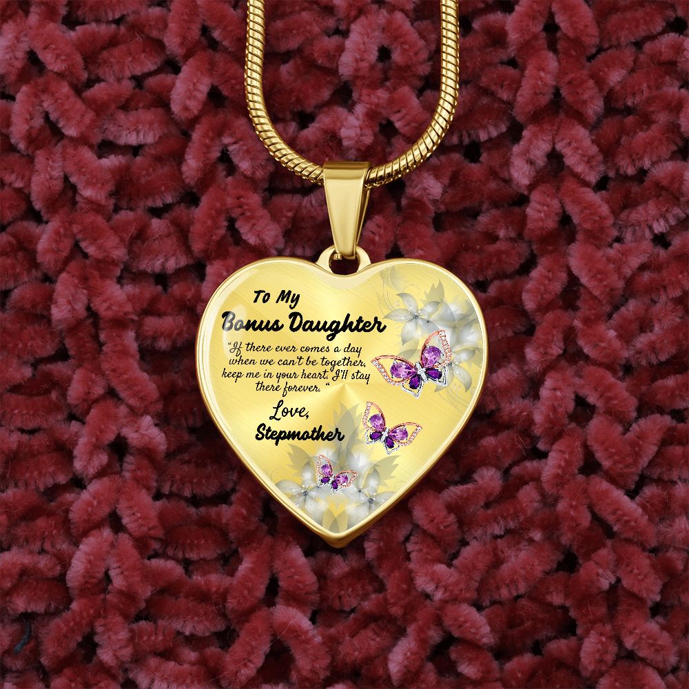To My Bonus Daughter Heart Necklace Christmas Gift, Birthday Gift From Stepmother