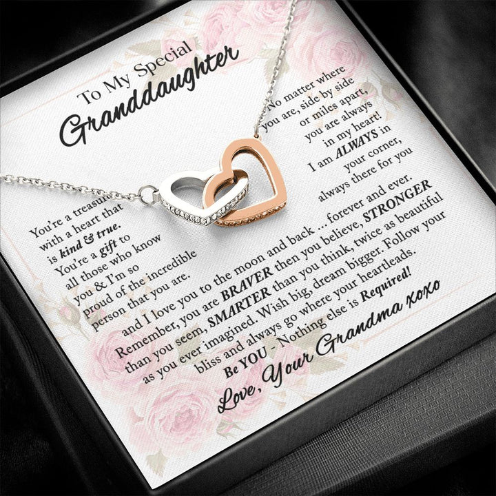 To My Special Granddaughter From Interlocking Hearts Necklace Gift Grandma