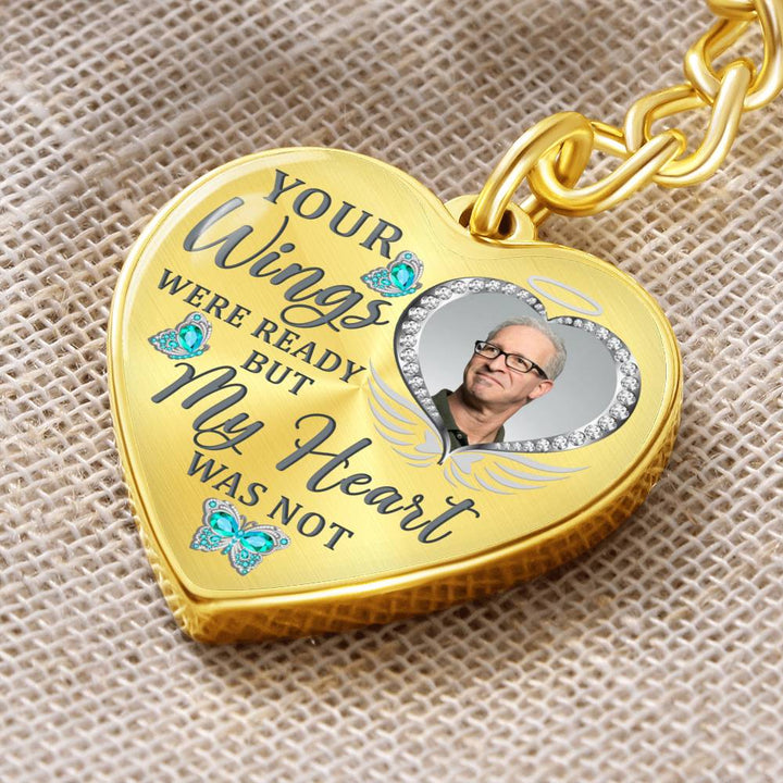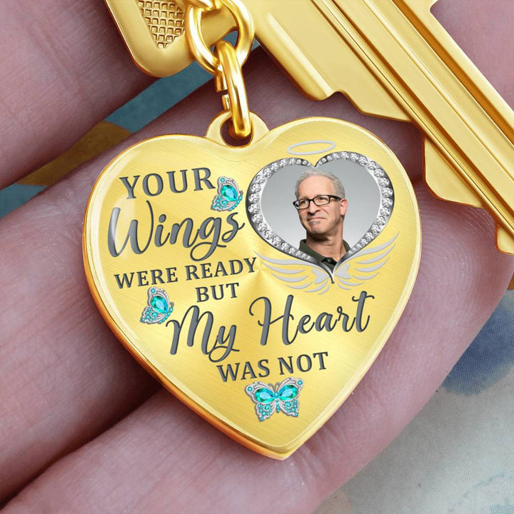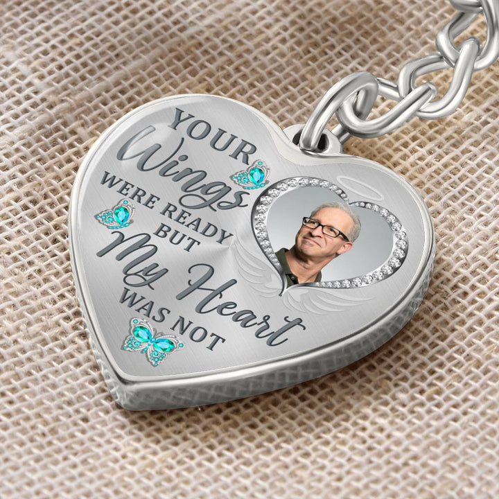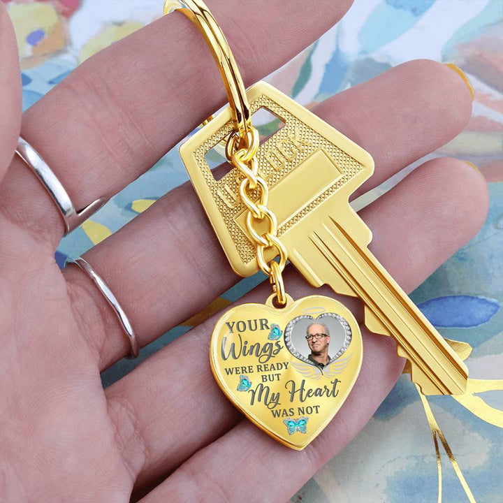Turquoise Butterfly Your Wings Were Ready Memorial Heart Keychain HNLVBC0010