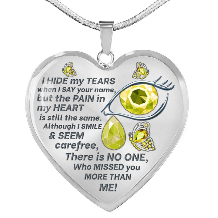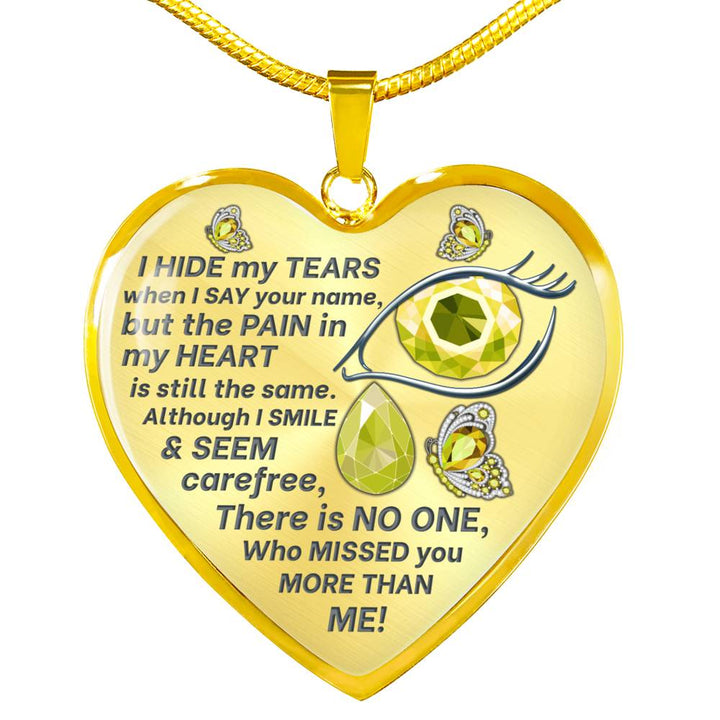 Yellow Butterfly I Hide My Tears Memorial Heart Pendant Necklace HNLVBC0004